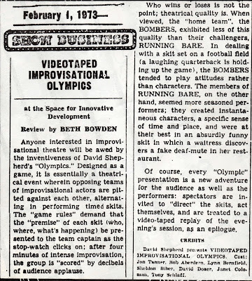 In 2007, David Shepherd’s cousin suggested he write up the three most important programs of his life. First one David tackled, was the Improv Olympix (originally called the Improv Olympics, before the Olympic Committee threatened a lawsuit), which David co-created with Howard Jerome. David never got around to writing up the other two programs, having been sidetracked by the creation of a new format in 2008; Life-Play, improv games designed to be played over the phone. I recently found David’s chapter on the Improv Olympix and it’s a fascinating piece of history from his perspective.